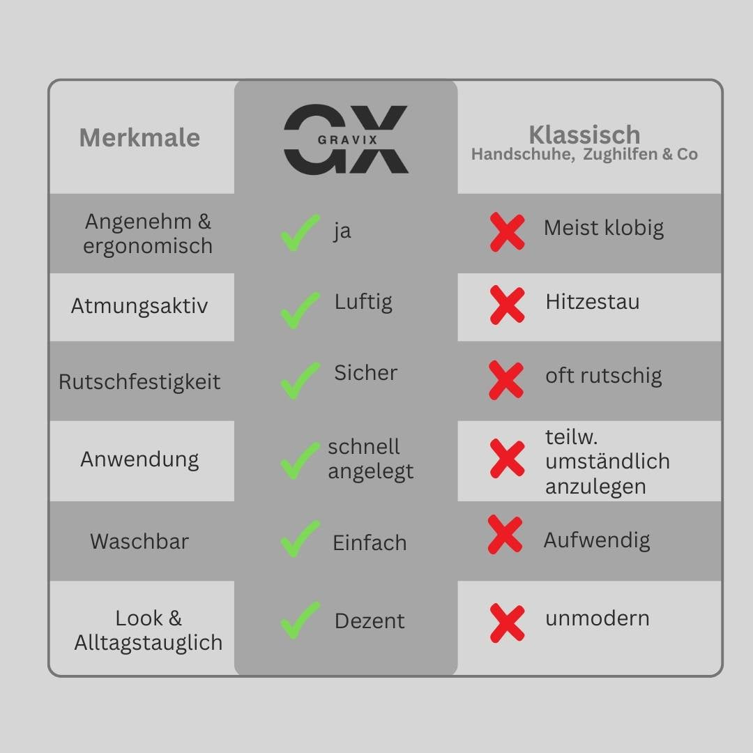 Blasen, Schwielen und rutschige Griffe gehören der Vergangenheit an. Mit Gravix trainierst Du kraftvoll und sicher – egal ob im Gym, im Park oder zu Hause.